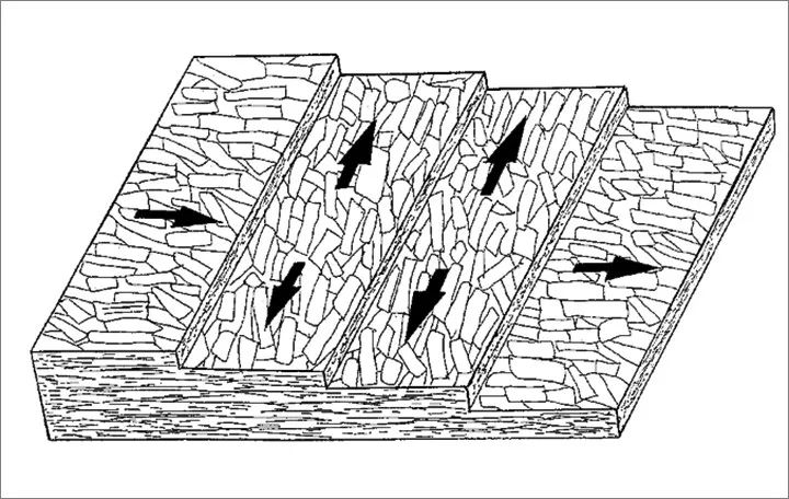 OSB板刨片縱橫交錯的排列,重組了木質(zhì)紋理結(jié)構(gòu),消除了木材內(nèi)應(yīng)力對加工的影響,使之具有更強(qiáng)的加工和防潮性能。