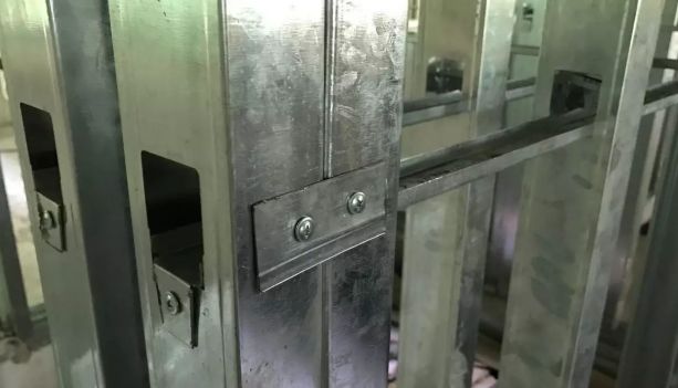 04. 輕鋼骨架連接不牢固,其原因是局部節點不符合構造要求,安裝時局部節點應嚴 格按圖上的規定處理,釘固間距、位置、連接方法應符合設計要求。