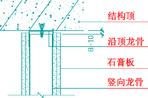 沿彈線位置固定沿項、沿地龍骨,可用射釘或膨脹螺栓固 定,固定點間距應不大于 600mm,龍骨對接應保持平直。
