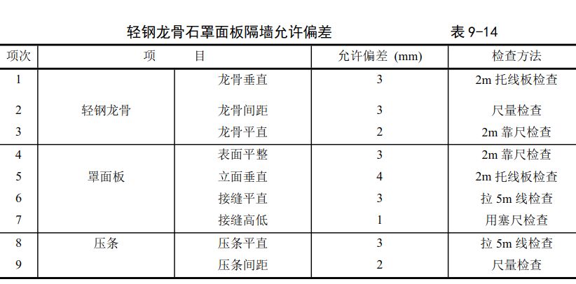 07.允許偏差項目:輕鋼龍骨石膏罩面板隔墻允許偏差見下表▼